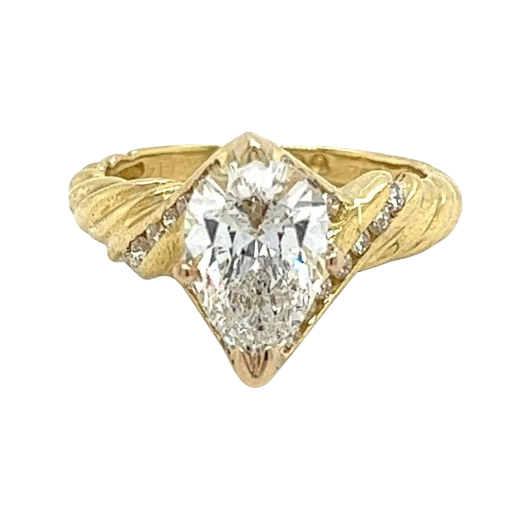 Ring متقاطع ملتوي من الذهب عيار 18 قيراطًا مرصع بماسة مقطوعة على شكل كمثرى وزنها 2.06 قيراط