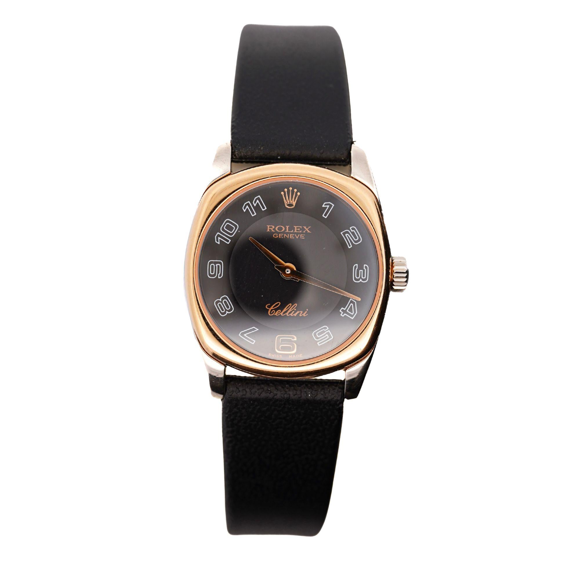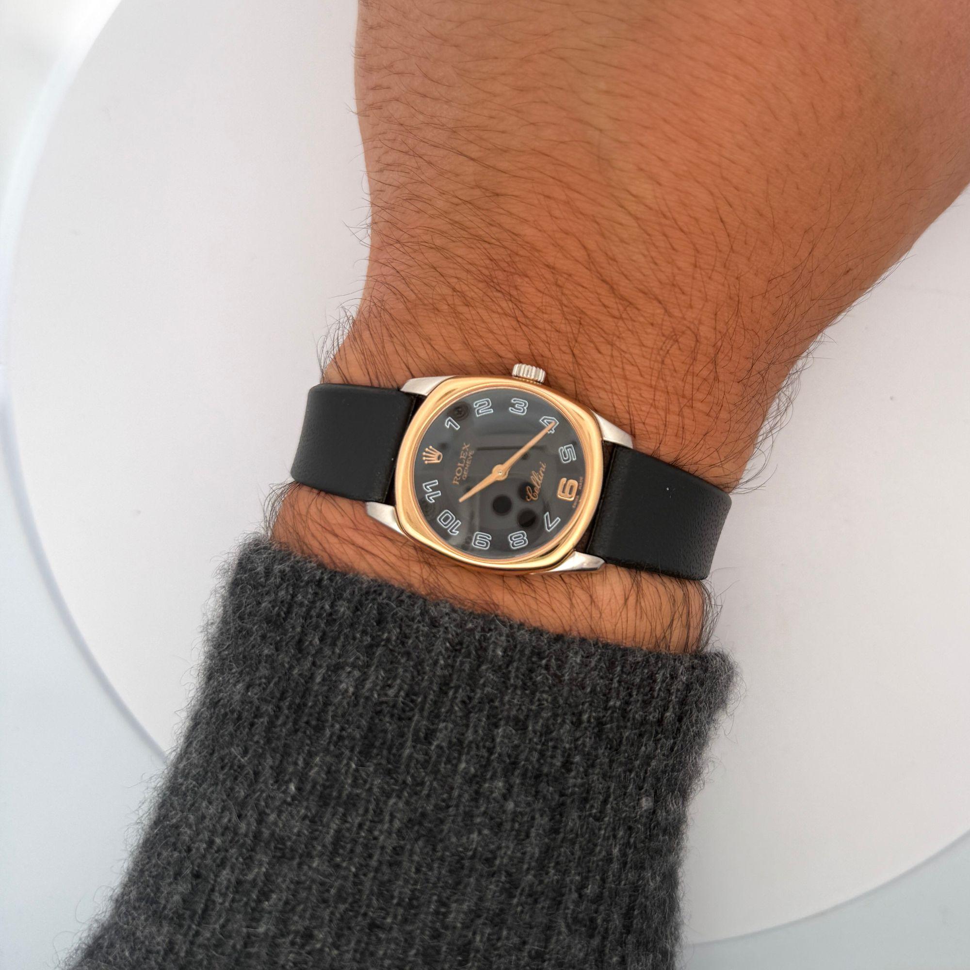 The Rolex Cellini collection represents Rolex's purest expression of haute horology and fine watchmaking without the sporting complications that define the Oyster family — named for the Renaissance master goldsmith Benvenuto Cellini, it is Rolex's dedicated dress watch line and has been produced in precious metals exclusively since its introduction. Founded in 1905, Rolex built its global reputation on precision and durability, but the Cellini collection demonstrates the brand's equal mastery of elegant, jewelry-oriented watchmaking. The Danaos variant — with its distinctive cushion case form — is among the more collectible and design-distinctive references within the Cellini family, produced in limited quantities and representing a departure from the round cases that dominate most Rolex production. Vintage Cellini pieces in rose gold are particularly sought after by collectors who appreciate Rolex beyond its sporting references, and the Danaos cushion case with an original Rolex buckle is a strong example of this underappreciated chapter of Rolex history.